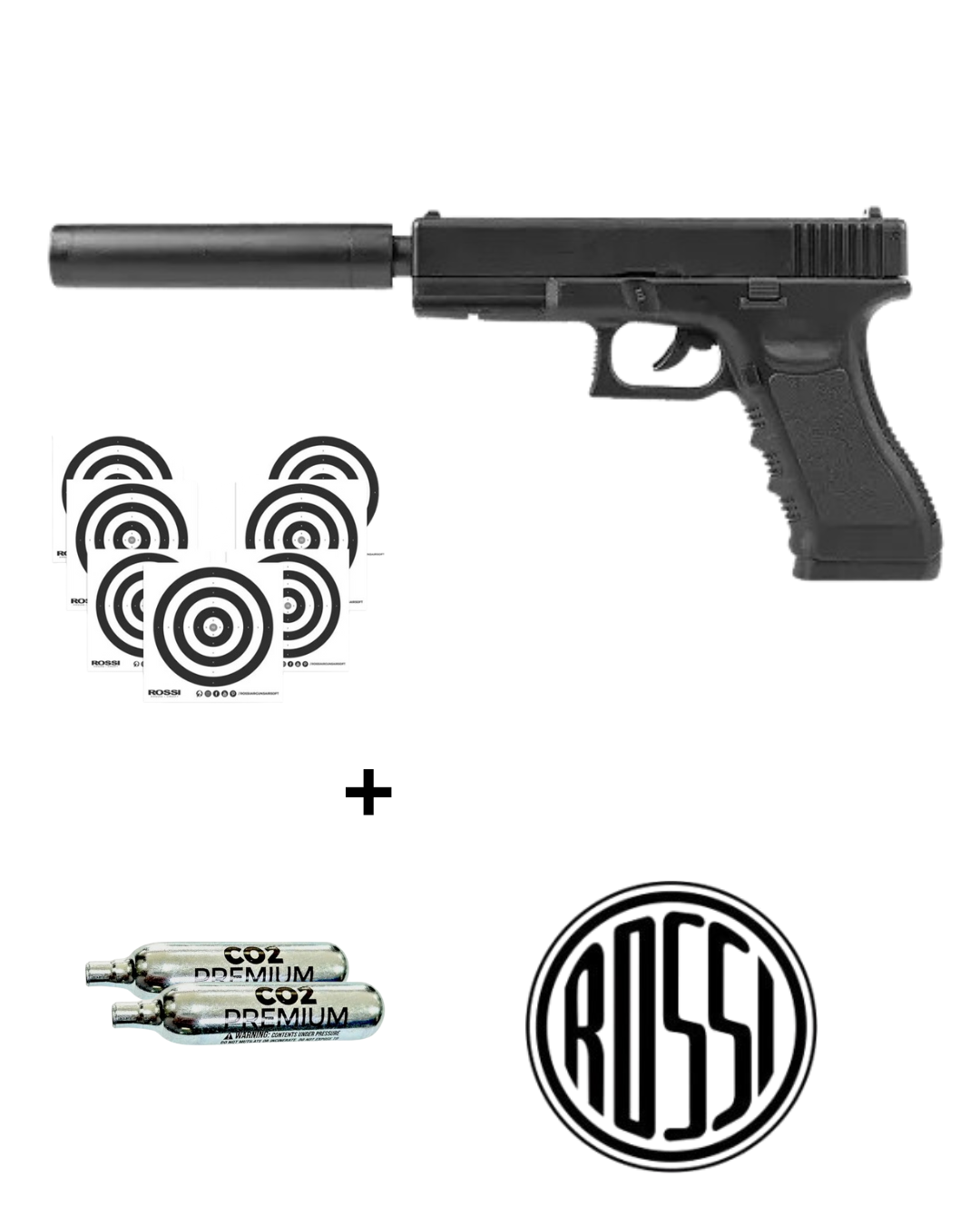 NA COMPRA DA PISTOLA PRES ROSSI G17 MAGNUM CO2 6,0MM VOCÊ GANHA DE BRINDE ALVO DE PRECISÃO AIRSOFT 140X140MM (20UN) + 2 CILINDROS DE CO2 GRÁTIS.
