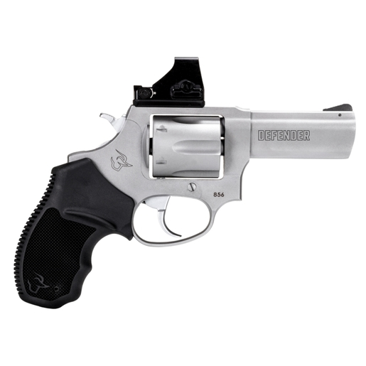 O primeiro revólver pronto para receber miras ópticas do mundo, com uma gravação especial no cano. O RT 856 Defender é equipado com sistema Taurus Optic Ready Option (T.O.R.O.), sendo compatível com os modelos mais populares de miras ópticas disponíveis no mercado, sem necessidade de customizações. Com armação de aço, cano de 3” e capacidade de 6 disparos em calibre .38 SPL é um revólver ideal para defesa pessoal. Com armação pequena, o gatilho em ação simples e dupla (SA/DA) com acionamento suave e rápido, e a empunhadura de borracha Carry On complementam esta plataforma. Pode também utilizar munições no calibre do tipo +P.**